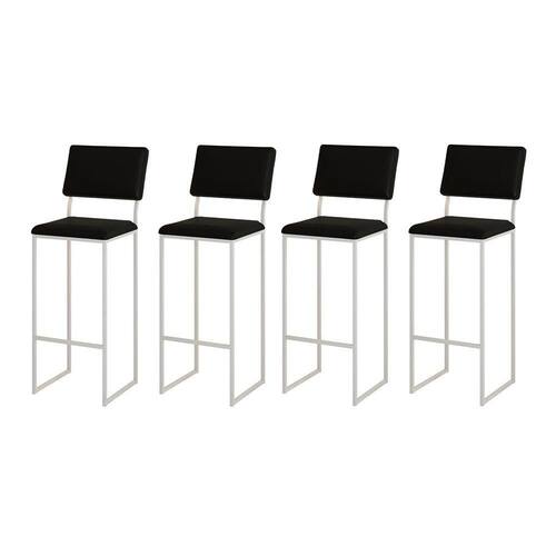 Kit 4 Banquetas Com Encosto Industrial E Moderna Nina Branco E Corino Preto