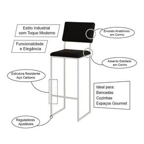 AS IMAGENS SÃO MERAMENTE ILUSTRATIVAS E PODEM SOFRER VARIAÇÕES DE COR E PEQUENOS DETALHES DE ACORDO COM O SEU MONITOR, ILUMINAÇÃO DO AMBIENTE E ATÉ MESMO A SUA PERCEPÇÃO VISUAL.Kit 4 Banquetas com Encosto Industrial e Moderna Nina Branco e Corino Preto