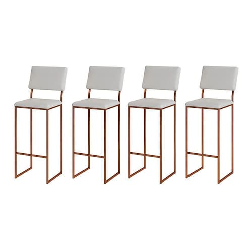AS IMAGENS SÃO MERAMENTE ILUSTRATIVAS E PODEM SOFRER VARIAÇÕES DE COR E PEQUENOS DETALHES DE ACORDO COM O SEU MONITOR, ILUMINAÇÃO DO AMBIENTE E ATÉ MESMO A SUA PERCEPÇÃO VISUAL.Kit 4 Banquetas com Encosto Industrial e Moderna Nina Cobre e Corino Branco