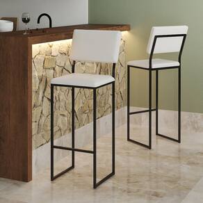 Características: Tipo: Banqueta Modelo: Nina Estilo: Industrial e Moderno Estrutura: Aço Carbono Preto Assento: Estofado Tecido do Assento: Corino Cor do Assento: Branco