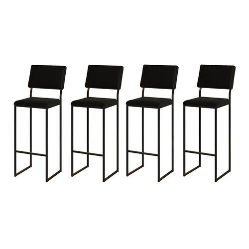AS IMAGENS SÃO MERAMENTE ILUSTRATIVAS E PODEM SOFRER VARIAÇÕES DE COR E PEQUENOS DETALHES DE ACORDO COM O SEU MONITOR, ILUMINAÇÃO DO AMBIENTE E ATÉ MESMO A SUA PERCEPÇÃO VISUAL.Kit 4 Banquetas com Encosto Industrial e Moderna Nina Preto e Corino Preto
