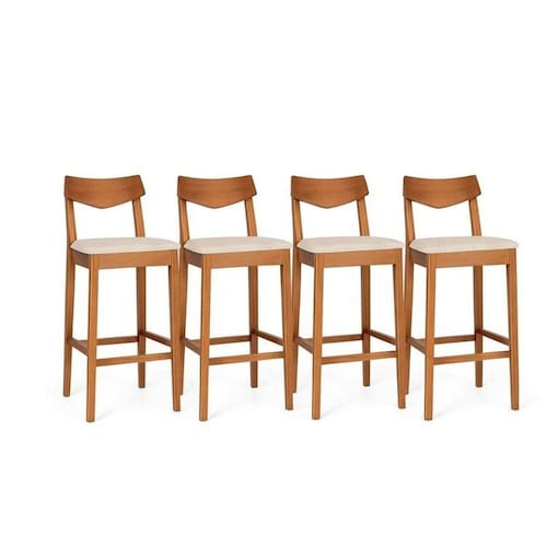Altura do Conjunto: 102 cm Ambiente: null Ambiente Principal: Sala de Jantar Cor: Marrom Informação Complementar: 4x Banqueta Madeira Maciça Linho Loop Bege 29/Garapa Largura: 46.3 Altura: 102 Peso: 6 Profundidade: 45 cm Necessita Montagem: Não