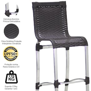 Kit 4 Banquetas Em Alumínio E Fibra Sintética Jk Preto Banqueta em Aluminio e Fibra Sintetica JK Para Cozinha, Edicula