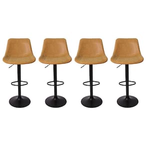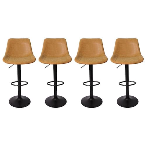 Kit 4 Banquetas Cadeiras Altas Com Encosto Alto Estofado Sofisticadas Modernas Diferentes Industrial Para Cozinha Americana Penteadeira Balcão Bancada Bar Pub Bistrô Ilha Area Gourmet Com Regulagem De Altura Giratória Roma ;Caramelo ;Vintage