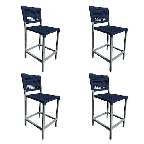 Kit 4 Banquetas França Em Corda Náutica E Base Em Alumínio Cinza Para área Gourmet Azul Marinho Azul