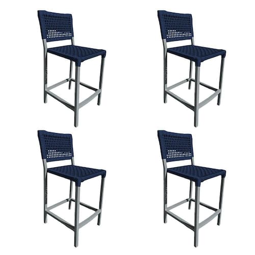 IMAGENS MERAMENTE ILUSTRATIVAS REALIZADO EDIÇÃO, PODENDO HAVER UMA PEQUENA VARIAÇÃO DE COR DEPENDENDO DE CADA TELA OU MONITOR.Kit 4 Banquetas FranÃa em Corda NÃutica e Base em AlumÃnio Cinza para Ãrea Gourmet Azul Marinho