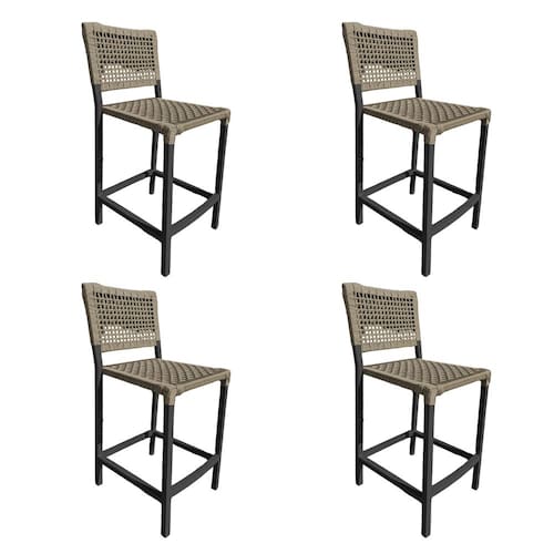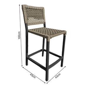 Kit 4 Banquetas França em Corda Náutica e Base em Alumínio Preta para Área Gourmet Rami - Bege