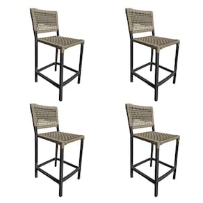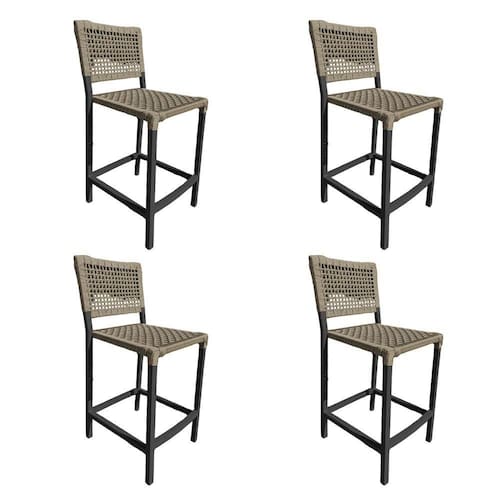 IMAGENS MERAMENTE ILUSTRATIVAS REALIZADO EDIÇÃO, PODENDO HAVER UMA PEQUENA VARIAÇÃO DE COR DEPENDENDO DE CADA TELA OU MONITOR.Kit 4 Banquetas FranÃa em Corda NÃutica e Base em AlumÃnio Preta para Ãrea Gourmet Rami