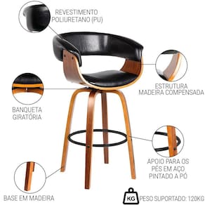 - Banqueta para diversos ambientes: cozinha, bancada, área gourmet, bistrô.