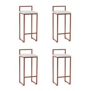 Kit 4 Banquetas Industrial Alta Bar Cozinha Bistrô Em Aço Dori Cobre Assento Suede Branco - Cor: Preto