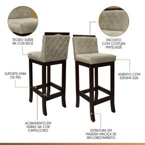Apresentamos a banqueta Nice, feita com madeira maciça de reflorestamento e acabamento em verniz. Seu assento preenchido com espuma D26 e encosto com espuma D23 garantem conforto duradouro. O encanto adicional vem da costura matelassê no encosto, enquanto o revestimento em suede adiciona uma sensação de luxo. Adapta-se perfeitamente a qualquer espaço, adicionando elegância e conforto instantaneamente. CARACTERÍTICAS TÉCNICAS: - Produzido em Madeira Maciça de Reflorestamento; - Acabamento em Verniz na cor Capuccino; - Assento Preenchido com Espuma D26; - Encosto Preenchido com Espuma D23; - Encosto com Costura Matelassê; - Revestimento em Suede na cor Bege. *Indicada para Bancadas/Mesas com Alt. 90/95 cm. *PRODUTO ENVIADO MONTADO. INFORMAÇÕES TÉCNICAS: Altura Total: 92 cm Altura até Assento: 65 cm Altura até Travessa: 13 cm Altura Encosto: 35 cm Largura Assento: 38 cm Largura Estrutura: 36 cm Profundidade Total: 42 cm Profundidade Assento: 41 cm Peso: 7 kg *Kit Composto por 4 Banquetas Nice. INFORMAÇÕES ADICIONAIS:ATENÇÃO: Móvel produzido em madeira maciça natural podendo ocorrer mudança no tom da madeira conforme o produto;*Conferir se o produto está de acordo com o que comprou, produto danificado não será aceito troca;**As imagens ambientadas são meramente ilustrativas e podem apresentar itens que não compõe o produto. As cores do produto podem variar de acordo com o monitor, a iluminação do ambiente ou sua percepção visual;***Limpeza deve ser feita com pano macio e seco ou levemente umedecido com água e sabão neutro. Não devem ser utilizados abrasivos como palha de aço e objetos cortantes;Garantia para defeitos de fabricação conforme Código de Defesa do Consumidor. Marca: CCS Interiores