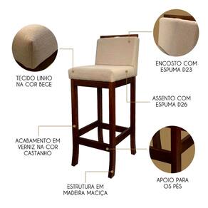 CARACTERÍTICAS TÉCNICAS: - Produzido em Madeira Maciça de Reflorestamento - Acabamento em Verniz na cor Castanho - Assento Preenchido com Espuma D26 - Encosto Preenchido com Espuma D23 - Revestimento em Suede na cor Bege *Indicada para Bancadas/Mesas com Alt. 90/95cm *Kit Composto por QUATRO Banquetas Turim *PRODUTO ENVIADO MONTADO.