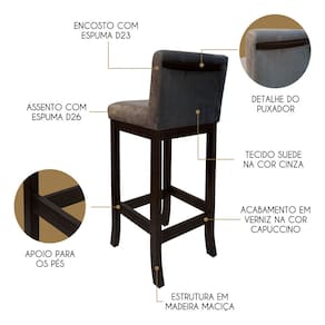 A Banqueta Média Melody é uma peça de destaque para qualquer ambiente, produzida em Madeira Maciça com acabamento em Verniz, garantindo durabilidade e elegância. Seu assento e encosto preenchidos com Espuma D26 e D23, respectivamente, oferecem o máximo conforto para refeições e momentos de descontração. Além disso, o revestimento em Tecido Suede confere um toque moderno e versátil. Seja na cozinha, sala de jantar ou espaço gourmet, essa banqueta é a escolha perfeita para agregar charme e funcionalidade ao lar! CARACTERÍSTICAS TÉCNICAS: - Produzido em Madeira Maciça; - Acabamento em Verniz na cor Capuccino; - Assento Preenchido com Espuma D26; - Encosto Preenchido com Espuma D23; - Revestimento em Tecido Suede na cor Cinza. *Indicada para Bancadas/Mesas com Alt. 90/95 cm. *PRODUTO ENVIADO MONTADO. INFORMAÇÕES TÉCNICAS: Altura Total: 90 Cm Altura até Assento: 65 Cm Altura até Travessa: 13 Cm Altura Encosto: 35 Cm Largura Assento: 38 Cm Largura Estrutura: 36 Cm Profundidade Total: 42 Cm Profundidade Assento: 41 Cm Peso: 7 kg *Kit Composto por 4 Unidades de Banquetas Média Melody. INFORMAÇÕES ADICIONAIS: ATENÇÃO: Móvel produzido em madeira maciça natural podendo ocorrer mudança no tom da madeira conforme o produto. *Conferir se o produto está de acordo com o que comprou, produto danificado não será aceito troca. **As imagens ambientadas são meramente ilustrativas e podem apresentar itens que não compõe o produto. As cores do produto podem variar de acordo com o monitor, a iluminação do ambiente ou sua percepção visual. ***Limpeza deve ser feita com pano macio e seco ou levemente umedecido com água e sabão neutro. Não devem ser utilizados produtos abrasivos. Garantia para defeitos de fabricação conforme Código de Defesa do Consumidor. Marca: Ccs Interiores