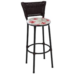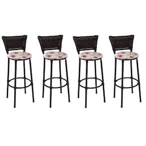 Kit com 4 Banquetas Preta Junco Argila com Assento Floral Vermelho Fortmix