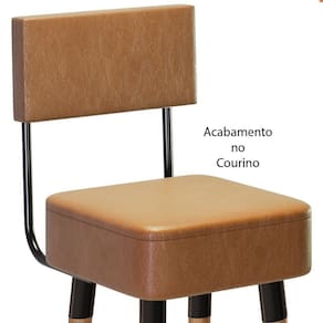 Características da Banqueta Alta para Bancada: - Altura da espuma do assento 2 cm com densidade D-28, certificada e com origem de qualidade comprovada; - Opção de assento nos tecidos couríssimo ou suede, estruturado com madeira de altíssima qualidade de reflorestamento, eucalipto seco evitando fungo e mofo; - Base do assento e fundo em MDF e MDP de 15 mm; - Arco em aço, com pintura especial epóxi; - 04 pés de madeira eucalipto com 60 cm de altura; - Peso suportado de até 110 kg; - Acompanha 4 unidades; - Por se tratar de um produto artesanal, pode ter pequenas variações nas medidas informadas acima;