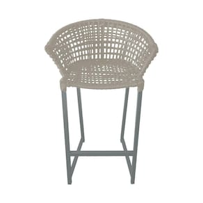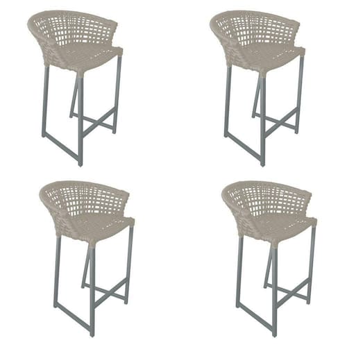 Kit 4 Banquetas Reis Em Corda Náutica E Base Em Alumínio Cinza Para área Gourmet Externa Areia Bege