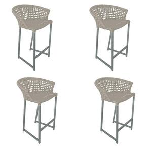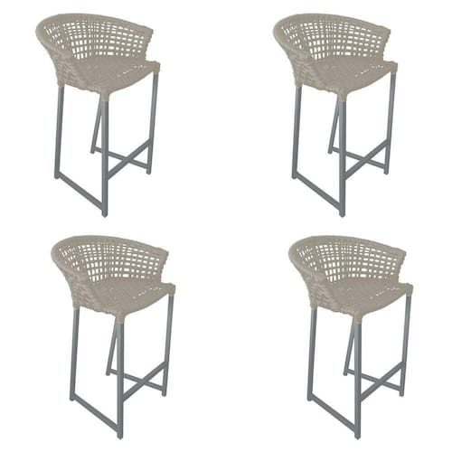 IMAGENS MERAMENTE ILUSTRATIVAS REALIZADO EDIÇÃO, PODENDO HAVER UMA PEQUENA VARIAÇÃO DE COR DEPENDENDO DE CADA TELA OU MONITOR.Kit 4 Banquetas Reis em Corda NÃutica e Base em AlumÃnio Cinza para Ãrea Gourmet - Externa Areia