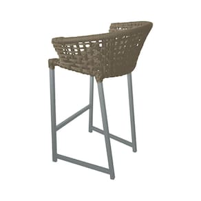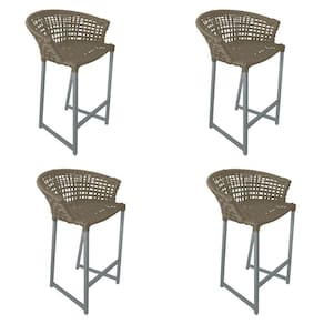 Kit 4 Banquetas Reis Em Corda Náutica E Base Em Alumínio Cinza Para área Gourmet Externa Rami Bege