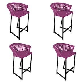 IMAGENS MERAMENTE ILUSTRATIVAS REALIZADO EDIÇÃO, PODENDO HAVER UMA PEQUENA VARIAÇÃO DE COR DEPENDENDO DE CADA TELA OU MONITOR.Kit 4 Banquetas Reis em Corda NÃutica e Base em AlumÃnio Preta para Ãrea Gourmet - Externa Rosa