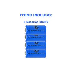 Kit 4 Bateria16340 Li-Ion 30000Mah 4.2V Lanterna Led