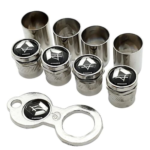 Feitos em metal de alta qualidade, esses bicos de válvula cromados são resistentes e duráveis, garantindo que você possa aproveitar o seu visual por muito tempo. Além disso, as capas de válvula cromadas adicionam um toque de elegância e estilo às rodas do seu veículo.