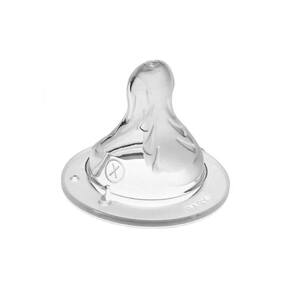 Ao invés de um furo, eles possuem corte em formato de X e contam com uma superfície texturizada e sedosa. Além do formato simétrico para um posicionamento correto durante o uso, eles também possuem uma válvula lateral para auxiliar na redução da ingestão de ar durante a alimentação, que, é o causador de desconfortos abdominais nos bebês, proporcionando um fluxo contínuo e adequado do alimento.