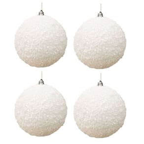 04 Bolas de Natal Brancas Flocadas com Efeito Neve 8cm