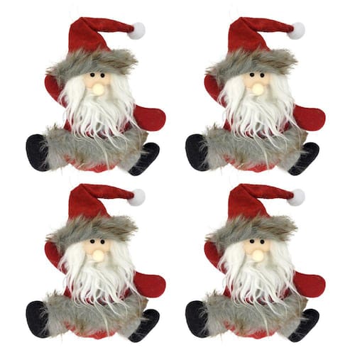 04 unidades Boneco Papai Noel pelúcia pendente cinza e vinho 16cm