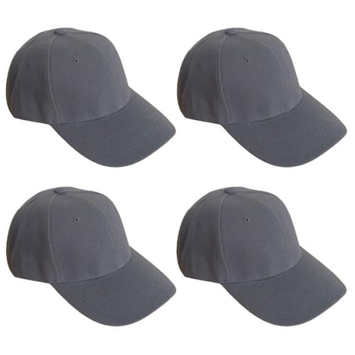 Kit contendo 4 Bonés Básicos Unisex Liso Cinza Tamanho 58 cm.