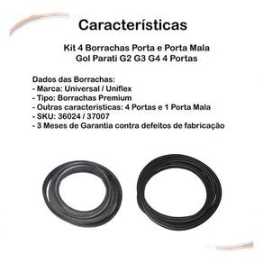 Kit 4 Borrachas para Porta e Porta Malas Gol Parati G2 G3 G4 Volkswagen Vedação Premium Preta Uniflex