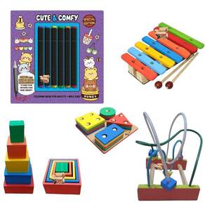 Kit 4 brinquedos pedagógicos em madeira + livro + canetinhas Cor: kit brinq + livro roxo Agradecemos por sua visita em nosso anuncio Somos a rafabox Kit atividades 4 brinquedos pedagógicos em madeira + livro colorir + canetinhas - primeira infância Contem: 01 kit completo para a primeira infância: 4 brinquedos pedagógicos em madeira + 01 livro cute e comfy com 06 canetinhas O kit primeira infância é a combinação perfeita para o desenvolvimento do seu bebê com 4 brinquedos pedagógicos em madeira de alta qualidade e um livro cute e comfy com 6 canetinhas, este conjunto completo estimula a coordenação motora, a criatividade e a percepção sensorial. Um presente ideal que une o aprendizado lúdico dos brinquedos de madeira com a diversão interativa das canetinhas. Invista no futuro do seu pequeno com este kit brinquedos educativos para a primeira infância os 4 brinquedos pedagógicos em madeira garantem durabilidade e segurança, enquanto o livro cute e comfy com suas 6 canetinhas convida à exploração artística e ao desenvolvimento da escrita. Uma experiência completa que nutre a imaginação e o aprendizado de forma envolvente e divertida. Procurando o presente ideal para uma criança Nosso kit primeira infância oferece o melhor dos dois mundos: 4 brinquedos pedagógicos em madeira que desenvolvem habilidades essenciais e um livro cute e comfy que estimula a criatividade com 6 canetinhas coloridas. Um combo pensado para horas de diversão e um desenvolvimento infantil abrangente. Kit contem: 01 aramado tamanho m 01 prancha de seleção 01 xilofone musical faz som de brinquedo 01 cubo de encaixe / empilhar 01 kit livro + canetinhas cute & comfy para colorir Dimensões aproximadas: - prancha base : 14cm x 14cm Circulo: 4,5cm Quadrado: 5,5cm Triangulo: 6,5cm Retângulo: 3cm x 5cm Espessura das peças: 1cm - aramado tamanho m A 18 cm x l 14cm x c 14 cm aproximado - xilofone faz som de brinquedo Tira maior: 2,5cm x 19cm Tira menor: 2,5cm x 13,5cm - cubo de encaixe Cubo maior: 4cm x 8cm x 8cm Cubo menor: 3cm x 3cm x3cm Kit livro + canetinhas cute & comfy para colorir e relaxar - editora online Desenhos amplos e de fácil preenchimento: proporciona uma experiência relaxante e envolvente. Acompanha 6 marcadores de ponta dupla: perfeitos para detalhes precisos e preenchimentos suaves. Tamanho confortável 21,0 x 21,0 cm : ideal para manuseio prático e fácil transporte. Alta resolução: impressões nítidas e detalhadas, garantindo um resultado incrível. Produtos feito em mdf e tinta atóxica Indicado para crianças acima de 3 anos Cores variam de acordo com Podutos 100% artesanais Não cobrimos mau uso Este é um anúncio da rafabox, empresa que atua há mais de 8 anos no comércio eletrônico. Confira algumas vantagens de comprar na rafabox - temos cnpj, somos uma empresa consolidada Nossos horários de atendimento: - seg a sex das 9h00 às 17h00 - sábados das 9h00 ao meio-dia --------- informações importantes ---------- - os pedidos serão enviados em até 1 dia útil após aprovados Salvo exceções como instabilidades em sistemas fiscais e logísticos, Grande fluxo de pedidos ocasionados por promoções, Épocas comemorativas do ano e/ou lançamentos de produtos Ou devido a atrasos ocasionados por empresas terceirizadas transportadoras, plataformas on-line, fornecedores etc. . Manteremos você informado em qualquer caso de atraso na postagem de sua encomenda. Homologação Inmetro: ABCP-BRI-0272-2022-03 Marca: Não Informado