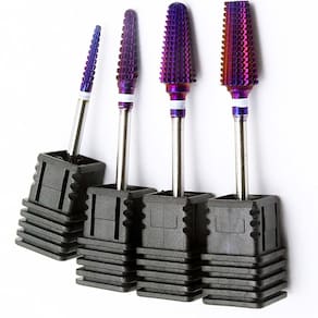 - Brocas em carboneto de tungstênio, o metal mais duro, sua dureza é comparada ao diamante. Ideal para esculpir, modelar, nivelar, polir e remover a modelagem em unhas artificiais
