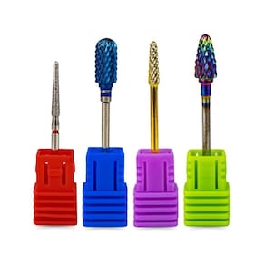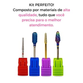 Características principais: - cortes extra finos, finos, médio e grosso; - kit com 4 unidades; - modelo flame s f 720; - modelo f gold umbrella; - modelo c colourful bullet st; - modelo m blue large barrel ball st; - ideal para todas as áreas e processos; - não danifica as unhas naturais; - perfeita para alongamentos de unhas, e acabamentos; - garante precisão; - acabamentos detalhados.