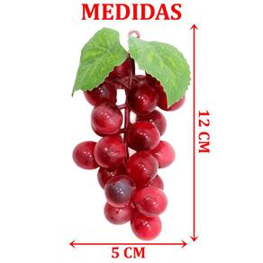 Kit 4 Cacho De Uva Vermelha Artificial Em Silicone De 12cm;