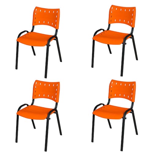 Especificações: - Estrutura dos pés: tubo oblongo 0,90mm; - Estrutura do encosto: tubo oblongo 1,20mm; - Pintura eletrostática preto fosco; - Assento e encosto de plástico; - Cadeira empilhável; - Suporta até 120kg; - Produto pré montado, apenas necessário realizar a montagem do encosto.