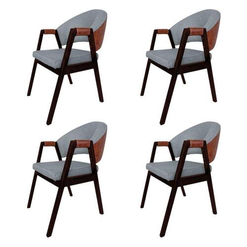 Kit 4 Cadeira Jantar Madeira Maciça Hélen Compose Facto Ocre Cinza Linho Castanho