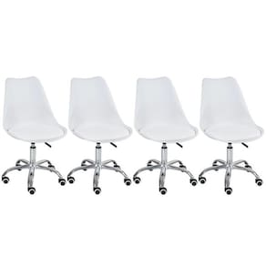 Kit 4 Cadeira Leda Giratória, Base Cromada com Rodízios, Regulagem de Altura,Branco