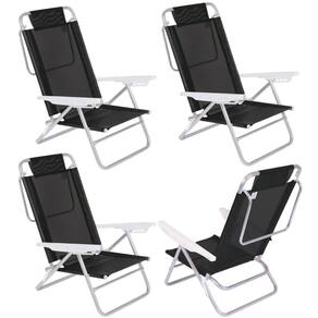 Kit 4 Cadeira Reclinável Summer 6 Posições Alumínio Praia Camping - Mor - Preto
