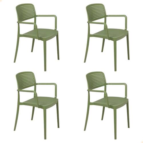 4 Un - CADEIRA TRAMONTINA SERENA EM POLIPROPILENO COR VERDE OLIVA COM BRAÇOS 92097027