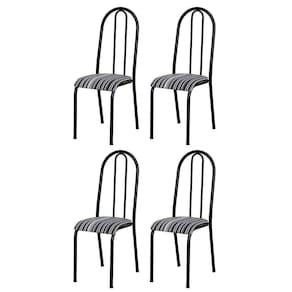 O Kit 4 Cadeiras 056 América Cromo Preto/Listrado - Artefamol, é uma excelente opção para complementar seu ambiente com estilo e qualidade, estrutura do tubo em aço carbono, acabamento em pintura epóxi, assento anatômico com revestimento de espuma e courvin. Deixe sua cozinha mais sofisticada com essas lindas cadeiras. Tá esperando o que? Leve já a sua!
