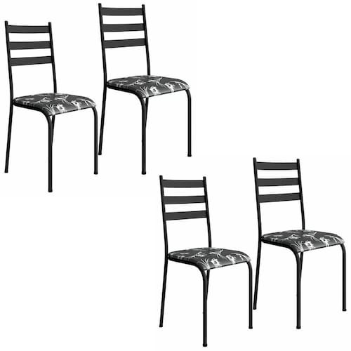 Marca: Loja DoceLar | Modelo: Kit 4 Caderias 541 Sala Pés Aço Tubular | Altura: 90 cm | Largura: 38 cm | Profundidade: 43 cm | Altura Embalagem: 24 | Largura Embalagem: 38 | Profundidade Embalagem: 92 | Peso: 12,8 kg | Peso Embalagem: 12,8 | Material: Tubos de aço e madeira compensada | Tonalidade: Multicolorido | Cômodo Indicado: Sala | Dimensões do item P x L x A (item_depth_width_height): 43 x 38 x 90 cm | Estado de origem: SP | Garantia em meses: 03 meses de garantia para defeito de fabricação. | Precisa de montagem?: Sim | É empilhável: Não | Profundidade do assento: 38 cm | É dobrável: Não | Condição do item: Novo | Profundidade da cadeira: 43 cm | Fonte do produto: Brasil | Peso máximo suportado: 100kg | Material dos pés: Aço tubular | Quantidade de cadeiras por conjunto: 4 | Material do assento: Madeira compensada, espuma D22 material sintetico | Incluí estofamento: Sim | Espessura do assento: 15mm | Materiais da estrutura: Madeira compensada e aço tubular | É cadeira de balanço: Não | É cadeira para exterior: Não | Largura do assento: 38 cm | Tempo de montagem: Indefinido | Desenho do tecido: Nenhum | Material do estofamento: Sintético | Com assento almofado: Sim | Altura da cadeira: 90 cm | Enchimento do estofamento: Espuma D22 | Desenho da cadeira: Floral | Altura do assento a partir do solo: 44 cm | Fabricante: Loja DoceLar | Largura da cadeira: 38 cm | É kit: Sim | Estilo: Moderno | Firmeza: D22 | Código de homologação ANATEL: Não se aplica | Baterias são necessárias? (batteries_required): Não | Certificação de teste externa (external_testing_certification): Não aplicável | Componentes incluídos (included_components): Almofada | Is Fragile (is_fragile): Sim | Número da peça (part_number): 29529 | Número de caixas (number_of_boxes): 2 | Número do modelo (model_number): 29529 | Palavras-chave de Pesquisa (generic_keyword): Kit, Cadeiras,Cadeira, 541, Pés, Aço, Tubular | Principais Características do Produto 0 (bullet_point#0): Possui enchimento de espuma D22 revestido em material sintético | Principais Características do Produto 1 (bullet_point#1): Possui pés de aço tubular | Principais Características do Produto 2 (bullet_point#2): Possui acabamento em pintura epóxi | Quantidade de itens (number_of_items): 1 | Inclui manual de montagem (INCLUDES_ASSEMBLY_MANUAL): Sim Floral/Preto