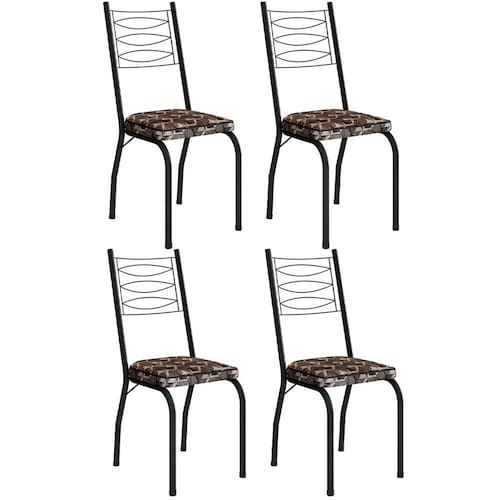 Kit 4 Cadeiras Aço Carbono Tubular Metálica Acabamento D-25 Luana Preto/mosaico Palha Seu sonho é ter uma cozinha/sala de estar com uma mesinha arrumada e confortável? Que tal começar a construir seu sonho com o Kit 4 Cadeiras para Cozinha Luana D-25 Clara de Aço? Com ele, você pode personalizar sua mesa de jantar e ter a de estar usando um produto de alta qualidade! Aproveite esse e muitos outros produtos incríveis na Casa Chick! Dimensões da Cadeira Luana: - Altura: 92 cm - Largura: 35 cm - Profundidade: 42 cm