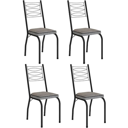 Kit 4 Cadeiras Aço Carbono Tubular Metálica Acabamento D-25 Luana - Preto