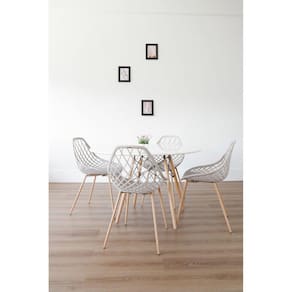 A Cadeira Cloe é especial para quem busca praticidade com toques de arte. Seu assento com detalhes vazados em polipropileno confere um ar moderno para a decoração e a base em madeira e detalhes em aço é a queridinha do design. O conjunto com 4 peças garante o custo benefício ideal para você decorar sua casa! Importante: recomendável para uso residencial. Este produto requer que seja feita uma manutenção regular simples, como apertar os parafusos periodicamente. Acabamento da Estrutura: Adesivo Almofada do assento: Altura do assento até o chão: 43 Ambiente Principal: Cozinha Apoio para Braços Estofado: Complexidade da Montagem: Baixa: pode ser montado por uma pessoa sozinha Cor: Nude Cor do Produto: Nude Dobrável: Não Enchimento do Assento: Enchimento do Encosto: Escala de Brilho: Fosco Estrutura do Assento: Aço e polipropileno Estrutura do Encosto: Polipropileno Giratória: Não Informações Complementares: Conjunto com 4 Cadeiras com assento e encosto em polipropileno, sem braços. Possui base fixa em aço com aplicação de adesivo na cor madeira. Itens Inclusos: 4 Cadeiras, Kit Ferragens e Manual de Montagem Linha ou Coleção: Cadeiras Manual de Especificação Técnica: Manual de Montagem e Instalação: https://cdn2.madeiramadeira.com.br/atributo/rivatti/801960-603877-manual-cloe-base-madeira-desmontada-1.pdf Material da Base: Aço Necessita Montagem: Sim Origem do Produto: Importado Peso: 3.2 Possui Apoio para Braços: Não Possui Apoio Para os Pés: Não Possui Rodízio: Não Recomendações de Uso, Manutenção e Limpeza: Uso interno. Não expor ao sol ou umidade. Não exceder a capacidade de peso. Limpar com pano macio umedecido em solução de água e sabão neutro e secar em seguida. Não utilizar produtos químicos ou abrasivos. Revestimento do Assento: Polipropileno Revestimento do Encosto: Polipropileno Rodízio com Trava: Sistema de Montagem: Parafusos Tipo de Assento: Fixo Tipo de Encosto: Fixo Tipo de Madeira Maciça: