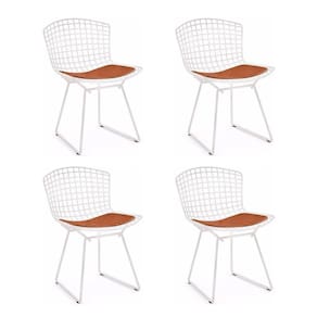 AS IMAGENS SÃO MERAMENTE ILUSTRATIVAS E PODEM SOFRER VARIAÇÕES DE COR E PEQUENOS DETALHES DE ACORDO COM O SEU MONITOR, ILUMINAÇÃO DO AMBIENTE E ATÉ MESMO A SUA PERCEPÇÃO VISUAL.Kit 4 Cadeiras Bertoia Branca com Assento Cobre