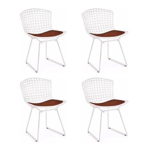 AS IMAGENS SÃO MERAMENTE ILUSTRATIVAS E PODEM SOFRER VARIAÇÕES DE COR E PEQUENOS DETALHES DE ACORDO COM O SEU MONITOR, ILUMINAÇÃO DO AMBIENTE E ATÉ MESMO A SUA PERCEPÇÃO VISUAL.Kit 4 Cadeiras Bertoia Branca com Assento Marrom