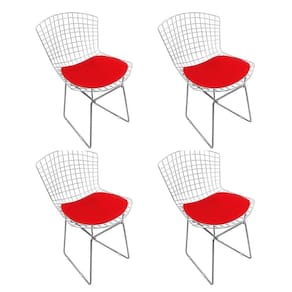 AS IMAGENS SÃO MERAMENTE ILUSTRATIVAS E PODEM SOFRER VARIAÇÕES DE COR E PEQUENOS DETALHES DE ACORDO COM O SEU MONITOR, ILUMINAÇÃO DO AMBIENTE E ATÉ MESMO A SUA PERCEPÇÃO VISUAL.Kit 4 Cadeiras Bertoia Cromada com Assento SintÃtico Vermelho