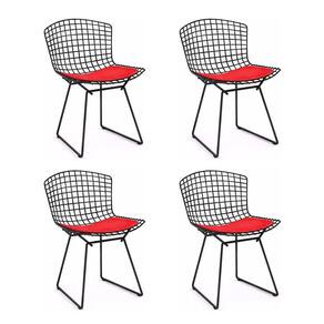 AS IMAGENS SÃO MERAMENTE ILUSTRATIVAS E PODEM SOFRER VARIAÇÕES DE COR E PEQUENOS DETALHES DE ACORDO COM O SEU MONITOR, ILUMINAÇÃO DO AMBIENTE E ATÉ MESMO A SUA PERCEPÇÃO VISUAL.Kit 4 Cadeiras Bertoia Preta com Assento Vermelho