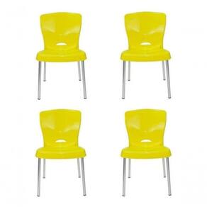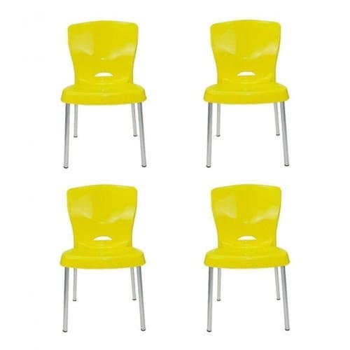Kit 4 Cadeiras Bistrô para Bar e Sala Estrutura em Plástico e Alumínio Assento Confortável Empilhável Uso Comercial
