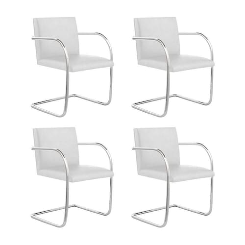 AS IMAGENS SÃO MERAMENTE ILUSTRATIVAS E PODEM SOFRER VARIAÇÕES DE COR E PEQUENOS DETALHES DE ACORDO COM O SEU MONITOR, ILUMINAÇÃO DO AMBIENTE E ATÉ MESMO A SUA PERCEPÇÃO VISUAL.Kit 4 Cadeiras Brno Couro Natural Branco Tubular Cromada